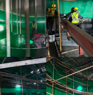 该项目于2025年9月19日正式启动,面临着极为严苛的施工条件:仅7天的超短工期内,需完成吸收塔及净烟道的防腐核心任务,任务强度之大、时间之紧迫不言而喻。更具挑战的是,施工期间天气突然骤变,给户外防腐作业带来了诸多不确定因素,进一步压缩了有效施工时间。面对双重压力,武汉东臻科技有限公司并未退缩,而是迅速响应、科学部署,组织专业施工团队全身心投入到各个施工环节。通过优化施工方案、合理调配人力物力、灵活调整作业时间,公司克服了恶劣天气带来的不利影响,严格遵循防腐工程的技术规范与质量标准,在规定时限内高质量完成了全部核心施工任务,确保了一号机组脱硫系统的安全稳定运行基础。